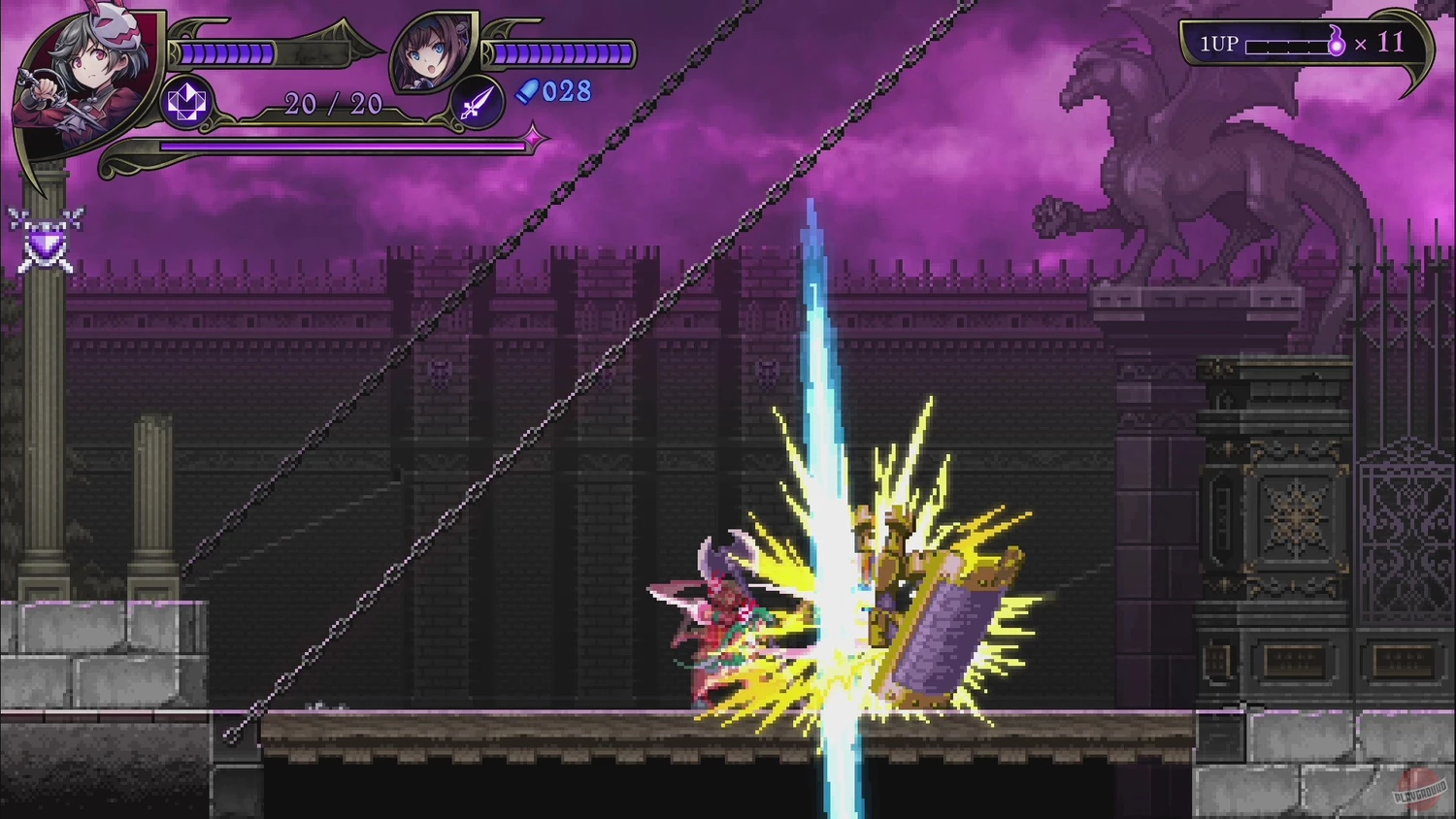 Gal Guardians: Demon Purge представляет собой классический платформер с боковой прокруткой. Каждая из героинь обладает уникальными способностями:
